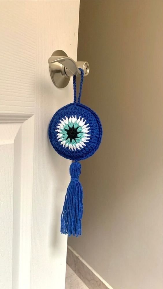 Crocheted keychain with evil eye is a charming handmade accessory that blends creativity, symbolism, and practical everyday use into a
