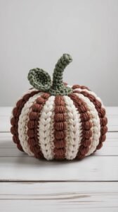 Finally, for the pumpkin stem, you can use a small stick from your garden for a rustic look or crochet a small stem using brown yarn. Some people even like to add twine or ribbon around the stem for a decorative touch. These little details make your pumpkin extra charming and unique.