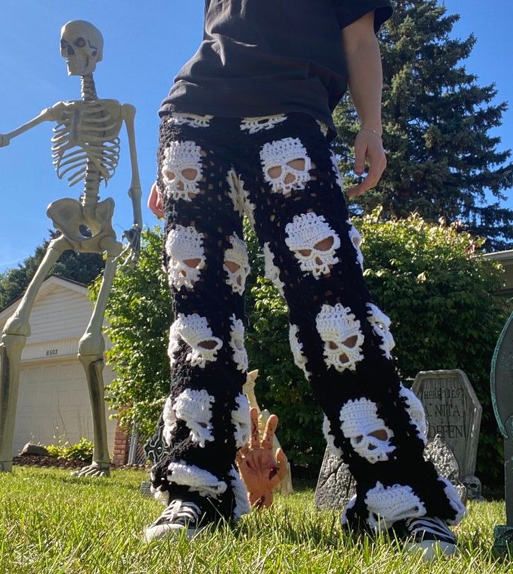 If you’re passionate about crochet fashion with a bold and creative twist, then this White Skull Crochet Pant 😍 –