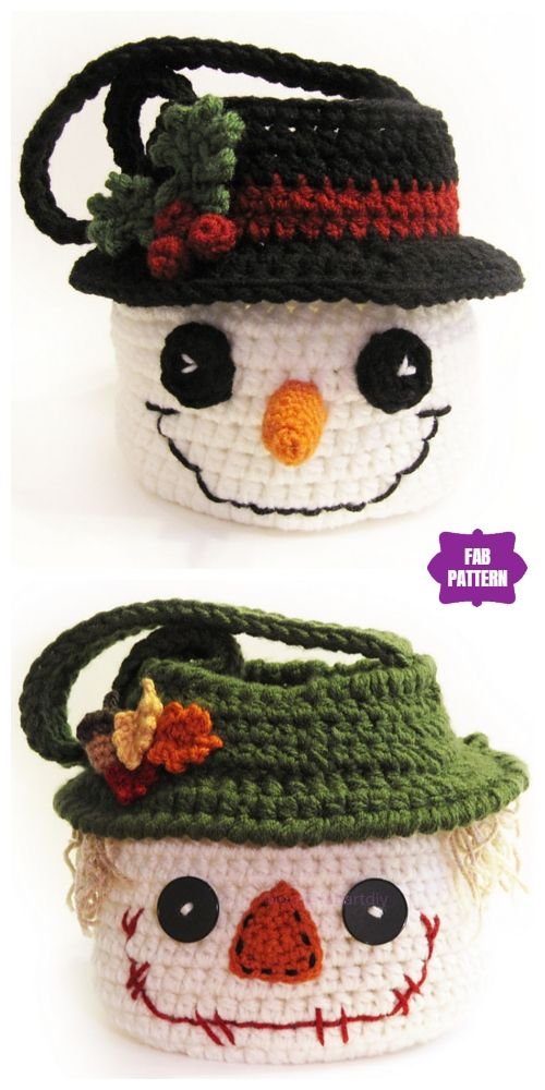 Crochet pattern for snowman basket- Step by Step Tutorial