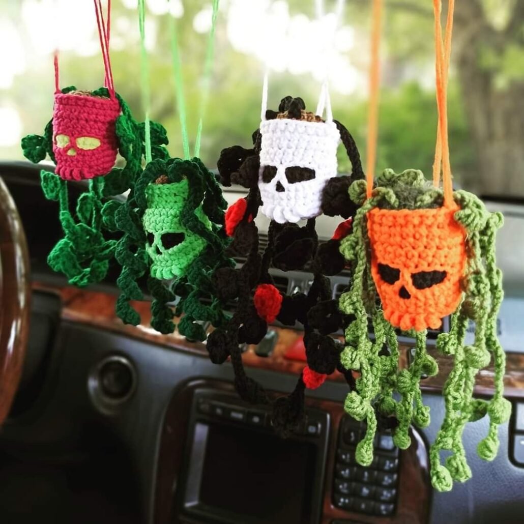 Learning how to make a crochet skull plant to hang in the car- Step by Step Tutorial is a fun