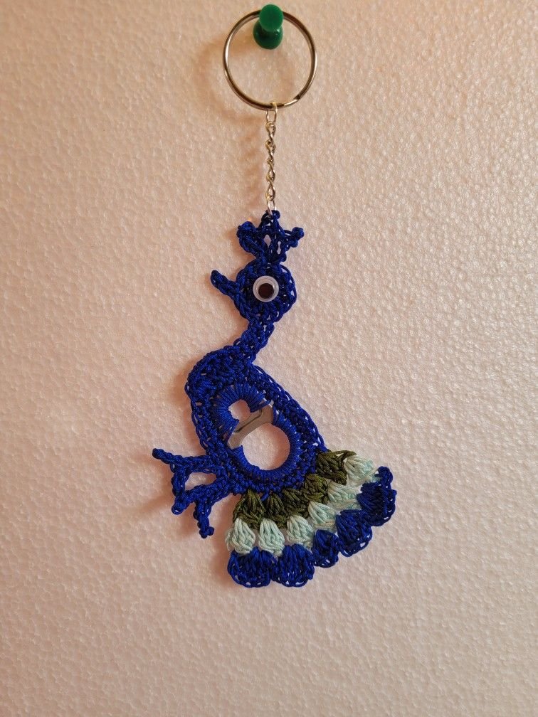 Creating a Peacock keychain made with recycled can lid and crochet- Step by Step Tutorial is a fun and eco-friendly