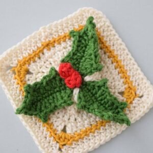 This project is also ideal for using scrap yarn, giving your leftover yarn balls a charming purpose. Whether you’re stitching while sipping hot cocoa or preparing holiday gifts, the 3D Christmas crochet holly leaves, granny square.-Step by Step Tutorial helps set the mood for cozy crafting. Throughout the tutorial, you will learn techniques such as building a solid granny square base, shaping dimensional leaves, forming small berries, and attaching them securely. These skills are also useful for many other crochet creations, making this project both educational and enjoyable.