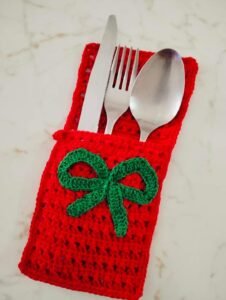 Now it’s your turn to try! Grab your hook, pick your favorite Christmas colors, and start crafting your own Christmas crocheted cutlery holder today. When you finish, share your experience—leave a sincere opinion and suggestions about this tutorial. Your feedback will help inspire even more crochet lovers to bring handmade magic into their homes this Christmas!