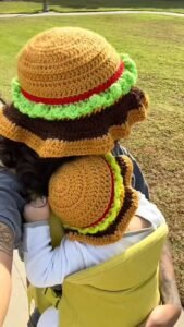 You can also incorporate additional “ingredients” such as tomatoes or sesame seeds. These small details make your Crochet cheeseburger bucket hat tutorial even more unique and fun to wear.