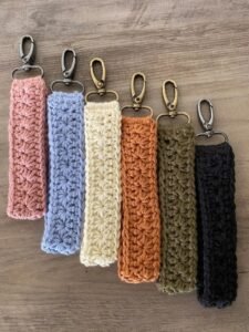 You will also need a keyring or clasp. This is what transforms your crochet piece into a functional keychain bracelet. Make sure the keyring is sturdy and easy to attach, as it plays a crucial role in the durability of your finished project.
