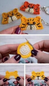 In this Step by Step Tutorial, you’ll learn how to crochet the tiger’s face, attach the magnet, and assemble the keychain neatly. The process involves simple stitches such as single crochet, double crochet, and slip stitch, making it approachable for all skill levels. Get your yarn ready and follow along—you’ll love making your very own cute tiger keychain!