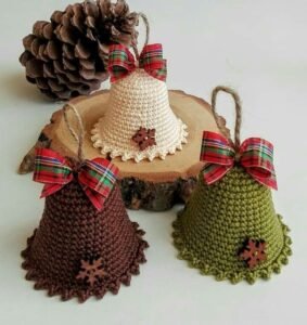 Hang your bells on Christmas trees for charming handmade decorations. They add warmth and personality to festive décor. This makes the Crocheted bell: learn how to make one.-Step by Step Tutorial perfect for the holiday season.