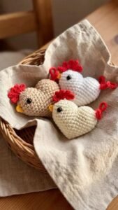 This project is also beginner-friendly. The crocheted chicken keychain pattern with heart introduces basic techniques that are easy to learn and apply to other crochet projects.