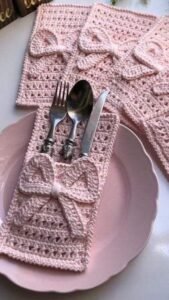 The decorating stage of the Learn how to make this beautiful cutlery holder.-Step by Step Tutorial allows you to express your creativity and turn a simple project into a unique work of art. You can add decorative elements that complement your table setting, reflect your personality, or match the theme of a special occasion. Options include embroidery, appliqué, crochet flowers, lace borders, or fabric painting.