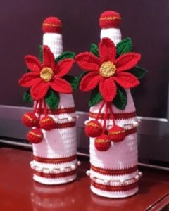 Fourth, these bottle decorations make wonderful gifts. A handmade bottle covered with crochet is perfect for holidays, weddings, or birthdays. It shows thoughtfulness and effort, which makes the gift special.