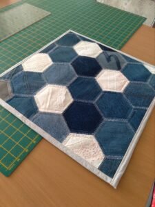 Once you’re satisfied with the arrangement, begin sewing the hexagons together row by row. Hand sewing is often preferred for better control, but machine sewing can also be used for efficiency. Both methods can produce excellent results in a Fabric hexagon rug pattern.