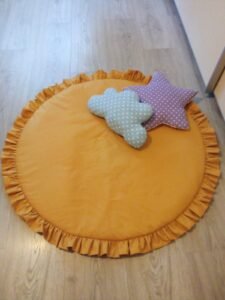 Another creative option is a circular rug using an Easy fabric rug pattern. This design works well in smaller spaces and adds a soft, cozy touch to any room.